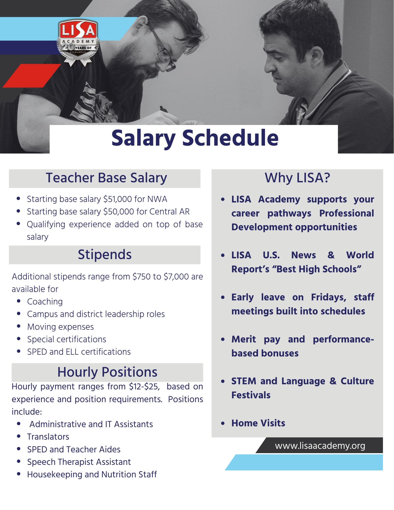 View our current staff salary schedule so you can see how LISA Academy values experience and expertise.